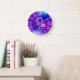 Trendy zodiac Capricorn symbol wall clock featuring a pretty purple and blue space nebula design.