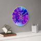 Trendy zodiac Gemini symbol wall clock featuring a pretty purple and blue space nebula design.