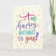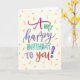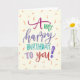 Main-en lettres "très joyeux anniversaire" un design de carte de calligraphie.