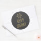 Un autocollant rond unique, festif et d'inspiration vintage avec un flocon de neige et l'expression "Very Merry" en parties scintillant or sur un arrière - plan au charbon de bois. Parfait pour les enveloppements, la décoration et les cartes de vacances !