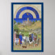 The Book of Hours was a prayer book that became popular in France around the year 1400 and was made for the French prince Jean de Berry. From Wikipedia: Each month of the calendar is allotted two pages, one for the calendar and another for the miniature and a semicircular arch. The calendar provides the reader with days in the solar and lunar months, as well as great feasts and saints for each day. January is the largest miniature in the calendar and includes the Duke de Berry at a New Year’s Day feast. Several of the miniatures depict the Duke, fields or castles he owned, and places he visited. This portrays the personal function of the book of hours, as it is customized to suit the patron. Add a frame, print it on canvas, or purchase the matching invitations.