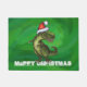 TRex in Santa Hat on Green Doormat