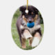 Tri Coloured Australian Shepherd Pup Ceramic Ornament