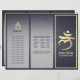 YOGA Meditation Instructor Studio / Elegant Yoga and Massage Therapy Studio Tri-Fold Brochures Template - Elegant White and Gold Foil Yoga Meditation Magical Root Chakra Symbol / Muladhara Chakra Symbol / Seed Mantra LAM Sanskrit Letter on Navy Blue Grunge Background.