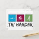 Awesome triathlon t-shirts, mugs and stickers. Tri Harder Swimming, Cycling and Running triathlon gear, clothes, gifts and souvenirs from your next triathlon. Original Tri Harder design for athletes.