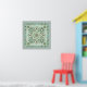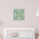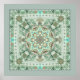 An intricate mandala in muted pastel colours with a star shaped medallion holding a classic Lotus mandala at centre, all surrounded by geometric triangle and diamond shapes. Primary hues are shades of turquoise, aqua and mauve with a grey-green border.