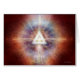 Detailed red mandala with white triangle in centre, above a sitting meditator. By Daniel B. Holeman