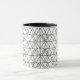 This mug has a mid-century modern design of white triangles running horizontally made with black lines.