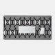 A modern geometric design of black triangles and black rectangles on medium grey background. Version 2.