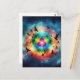A vibrant and psychedelic artwork featuring a colourful triangle surrounded by a swirling cosmic background and a flock of crows. The image evokes a sense of mystery, spirituality, and cosmic energy.