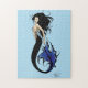 Tribal ink mermaid with blue in her tail set in a light blue backdrop