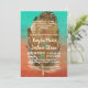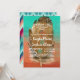 Vibrant faux watercolor in shades of aqua/teal that blends into a deep orange. A large feather is displayed with white lettering. Personalize this invitation to change the text to your own quote. A true tribal feel with arrows and tribal decoration.