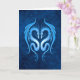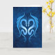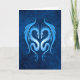 Two light blue tribal dragons face each other in this aggressive symmetrical design. The subtle highlights on the surface of the winged serpents give the design a striking 3D look. A shadow falls just behind the twin dragons making them appear to float just above the deep blue background. Large wings stretch out on either side which beautifully frames the design. This stunning pattern makes a stylish card.