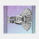 Black and white highly detailed with geometric patterns and shapes tribal African elephant in a walking forward pose framed on the top and bottom by intricately patterned geometric shapes borders in black. The background is a teal and purple gradient watercolor wash. It's a fantastic trendy fleece blanket for teen bedroom decor. It's bold beautiful and sure to please the elephants lover in your life.