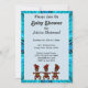 Baby shower Invitation. Abstract in blue or cyan shades. Tribal dancers at the bottom of the front card. Design all zigzags to the centre. Let's go tribal with this trendy abstract design on the front and back of this flat card. Replace the information with your own. All customization is available for the front and back of the card.