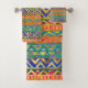 Tribal Geometric Watercolor and Gold Pattern Bath Towel Set