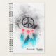 * Grunge Peace Sign Feathers Flowers Tribal Boho Watercolor Yearly Planner. It has an artsy creative grunge Peace Sign Symbol with some Pink Daisy Flowers and Turquoise Blue Feathers SMALL PLANNER *