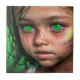 Tribal Kids | Futuristic Girl Glowing Green Eyes Tile