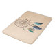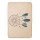 Native american tribal dream catcher with blue, green, and brown feathers and beads. Background has a microdots pattern over custom colour.