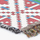 The traditional pattern of woven-textile ribbon from Alsunga, Latvia, with an eight-pointed star (Auseklis) in red, blue, green, and white.