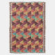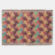 Colourful geometric pattern of textured triangles with a retro or tribal look.