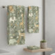 Featuring a captivating 'Tribal Safari Jungle' pattern, this pattern showcases friendly, stylized safari animals—including the lion, giraffe, zebra, and elephant—nestled among whimsical foliage in muted, olive-green tones. This soft, towel set is perfect for snuggling after a bath while adding a delightful layer of safari decor to your child's bathroom. Search ID1260 to see other products with this cute safari pattern. Note: design adapted from generative content.
