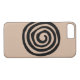 A tribal spiral swirl petroglyph image in black against a customisable earthy background colour. This style of primitive tribal art is energetic and makes a strong impression. This funky iphone case is simple yet striking with primitive art line work, thick black bold lines against a vibrant fully customisable background colour