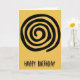 Birthday card with customisable greeting ! A tribal spiral swirl petroglyph image in black against a customisable background colour. This primitive tribal art is energetic and makes a strong impression. This art greeting card is simple yet striking with primitive art line work, thick black bold lines against a vibrant fully customisable background colour. The greeting can be changed to suit you needs - eg: congratulations, Thank You etc..