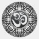 Semi transparent Om symbol on black with black and white tribal sun and leaves mandala design round stickers
