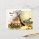 This Thank You! postcard features a beautiful watercolor tribal teepee and colourful Indian horse set against a scenic background.