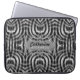 Textile design in metallic grey and black that has the feel of tribal, pattern laptop case with customizable name / monogram space