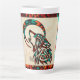 This is a Unique "One of a Kind" Tribal Wolf Latte Mug! It Features a Southwest Tribal Wolf Howling at the Moon on a Sandstone Background...Surrounded by a Turquoise, Orange and Black Border!