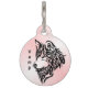 Intricate pattern design of a lone wolf head with license number contact information and pets name
