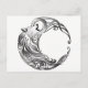 Tribal design featuring a wolf in a crescent moon with shades of black, grey and white. Customize the background colour! By Paxdomino.