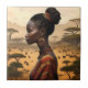 Tribal Woman Watching Over Her African Landscape, Tile