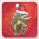 Triceratops Christmas On Red Coaster