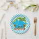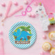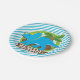 Triceratops Dinosaur; Sky Blue & White Stripes Paper Plate