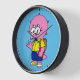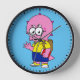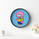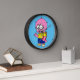 The size of the clock is dramatic and the abstract alcohol ink design is soothing and intricate at the same time. I chose the black frame that adds pop to the blue and gold design. The gold printing would be better in a slightly darker or larger font. I love it and I’m looking for just the right place in ny new apartment. I would recommend this clock for a personal gift or a present. I feel that the quality is excellent for the money! I’m a bit of a clock nut so I’m pretty particular about my purchases. The clock is larger in diameter than many if the clocks I have, so it stands out very well. I think a slightly darker printing color and a moderately larger size would best suit a professional decor or add more impact in a work place item.