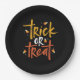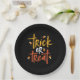 Trick or Treat Candy Corn Halloween Paper Plates features fun brush type and cute candy corn illustrations.