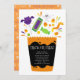 This spooky-sweet invitation features a party cup filled with Halloween candy. The words "Trick or Treat" are written in a fun and festive font. It's the perfect way to invite your friends' kids to a trick-or-treating adventure!