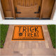 Welcome little ghouls and goblins with this spooky-fun Halloween doormat featuring a creepy spider, a flying bat, and the classic phrase "TRICK OR TREAT." Perfect for setting a festive mood at your front door! Make it extra special by adding your family name. Ideal for Halloween parties, seasonal décor, or greeting trick-or-treaters in style!