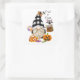 Cute gnome surrounded by candies and a friendly bat. Text reads "Trick or Treat".