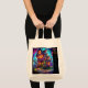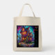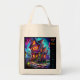 The printing came out very well, better than I had anticipated. The natural color fabric is sturdy with strong seams and comfortable handles. This tote fits easily over my shoulder. As it is filled, the bottom flattens out--very cool! I would buy this product again. This grocery tote holds a lot of groceries! The image quality was very good. The colors were a little darker than I had expected. The darkness may have been due to printing on a natural color fabric rather than on white. The cat design is attractively centered on the tote. The spirit of the design is very lively, just as it appears on the Zazzle website.