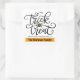 ©2017, Dio Perez ~ Add a hand-made touch to your Halloween party with this hand-lettered sticker design! Lettering artwork reads: "Trick or Treat", and you can customize them with your own personal message and names featured on the orange banner.