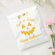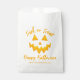 These jack o lantern pumpkin face favour bags feature the words "Trick or Treat" and "Happy Halloween" from your custom family name are perfect to give away bags of candy to trick or treaters on Halloween night!