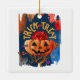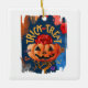 This vibrant ornament features the phrase "Trick or Treat" with a spooky jack-o'-lantern topped by a striking red rose, set against a bold, colourful background. A perfect blend of spooky and elegant—ideal for Halloween lovers, fall festivities, gothic aesthetics, and spooky season vibes.
