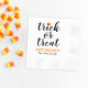 These scary cute Halloween paper napkins feature "Trick or Treat" in modern black script with an orange jack o'lantern pumpkin accent.