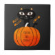 Trick or Treat Orange Black Cat Pumpkin Halloween Tile