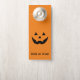 Trick or treat orange and black Jack o lantern spooky funny cute Halloween Door Hanger sign. Halloween decorations.