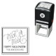 Stamp your Halloween treat bags, party favours and invitations with our typography stamp featuring "trick or treat" in modern script lettering with two lines of custom text. We love it with "Happy Halloween!" and your name for a fun personalized touch.